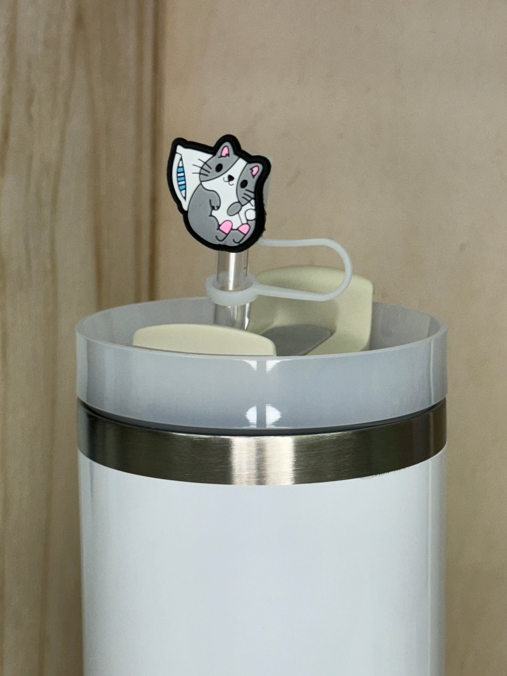 Embout de paille - Chat gris mignon