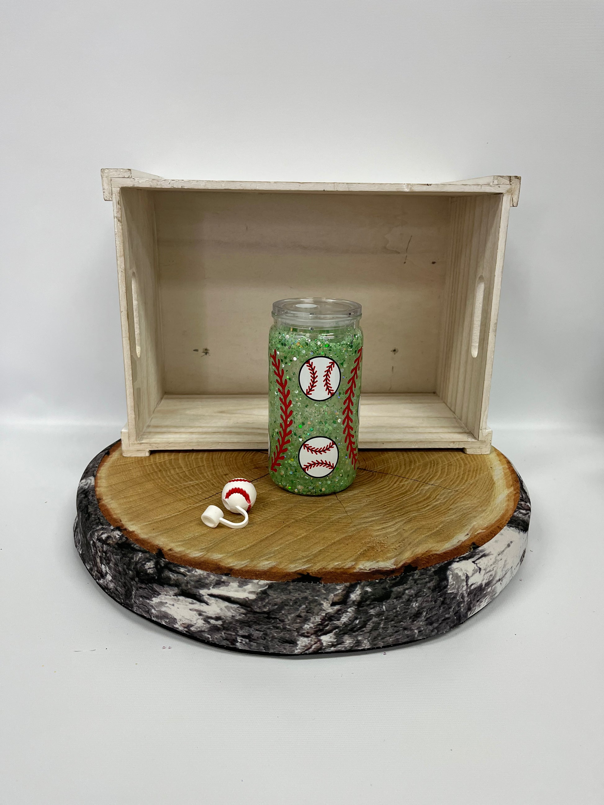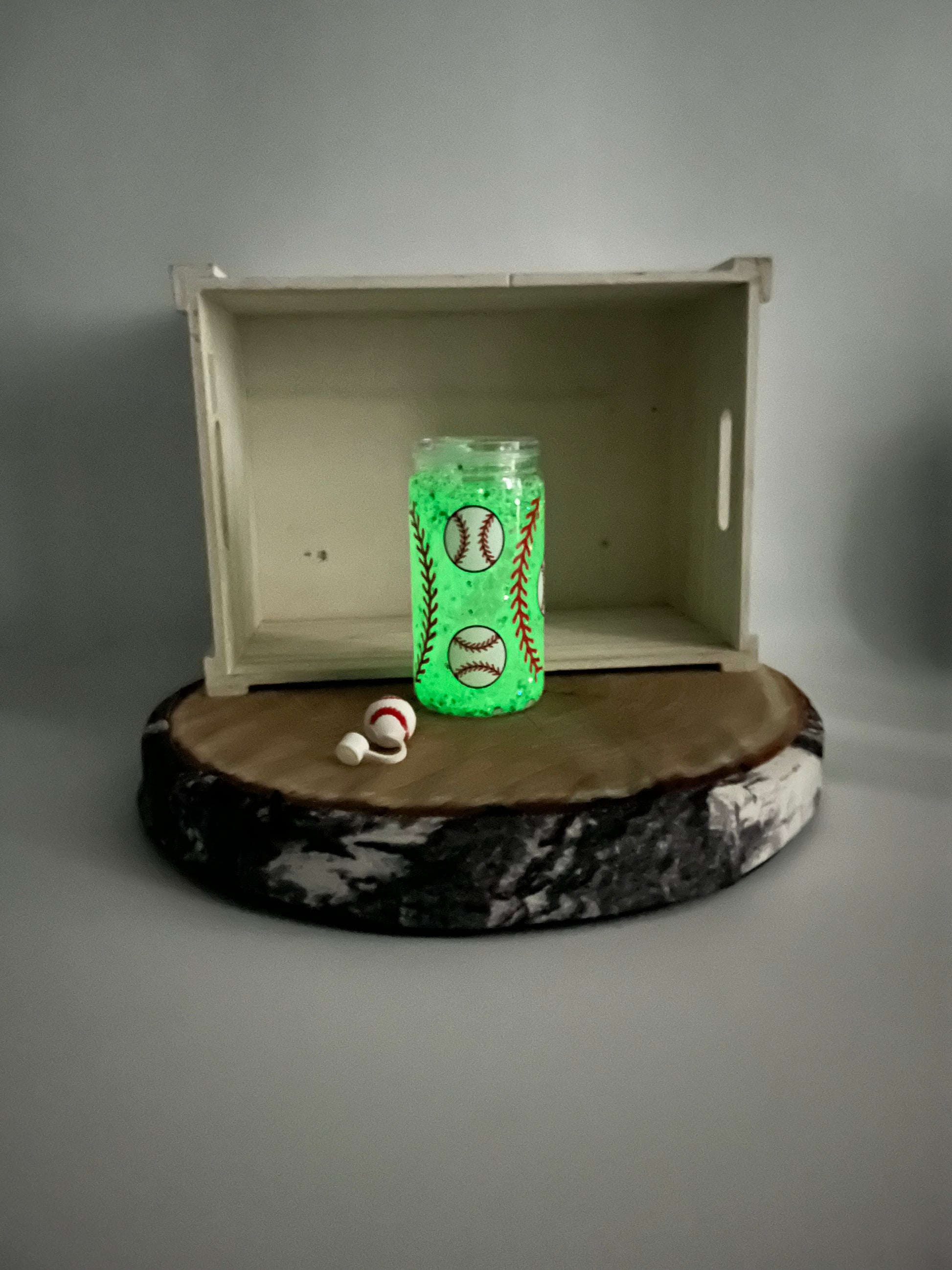 Verre en plastique avec paillettes glow in the dark et embout- Baseball