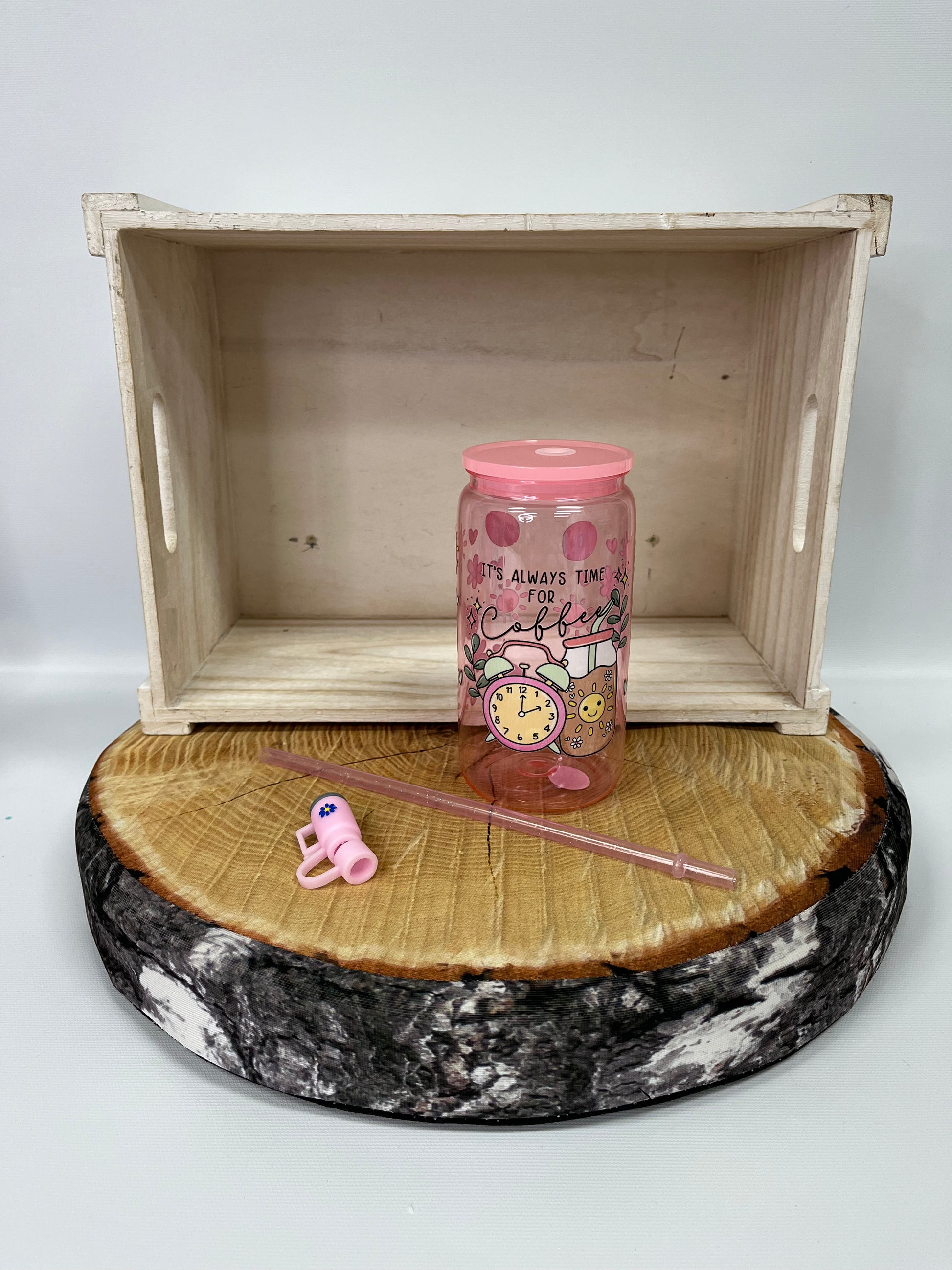 Verre en plastique et embout de paille- café et soleil