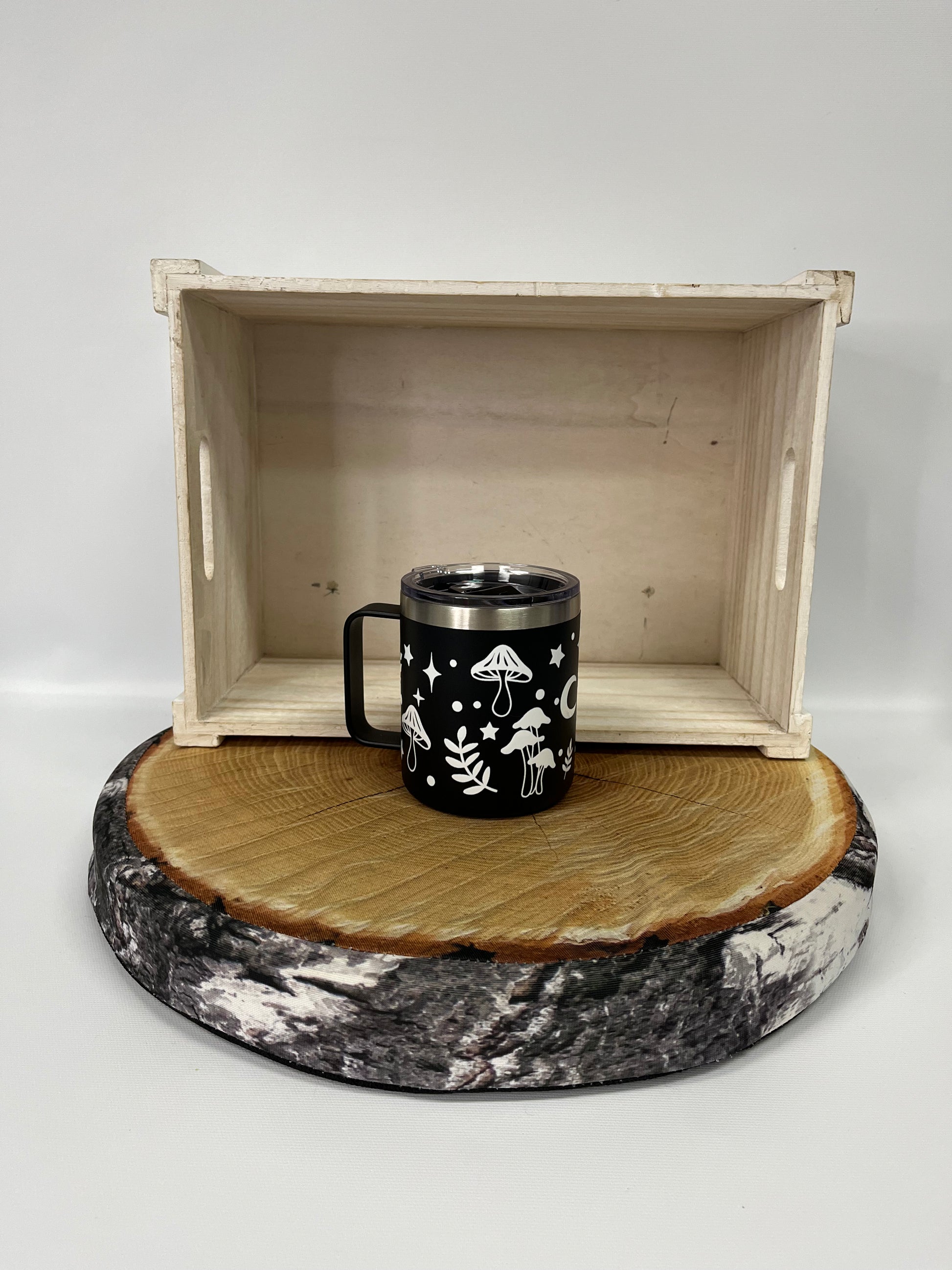 Tasse de transport noir- champignons
