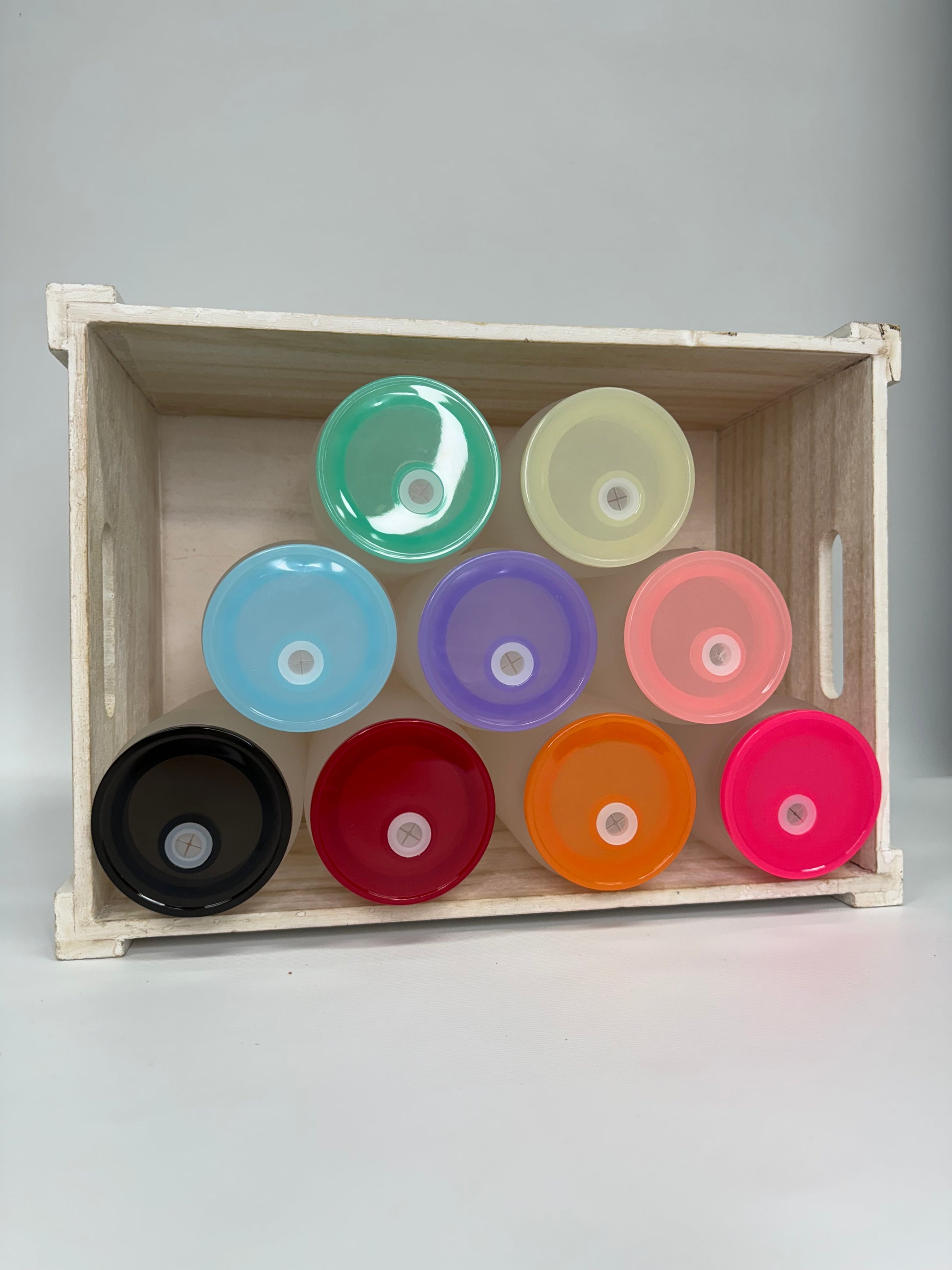 Verre en vitre avec couvercle coloré